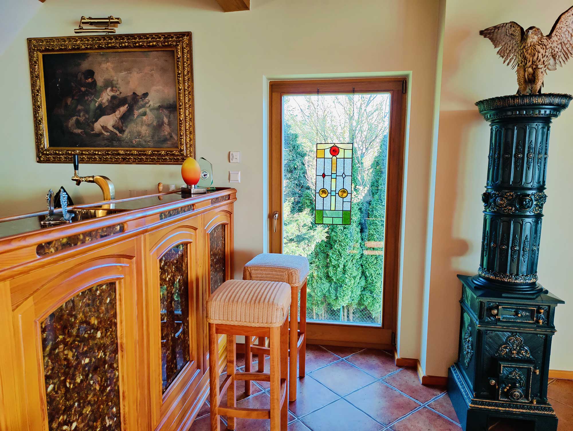 Die Villa ist interessant gestaltet mit einem Türmchen und bietet viel Platz und Privatspäre. Die Möbel sind alle edel und sehr individuell.